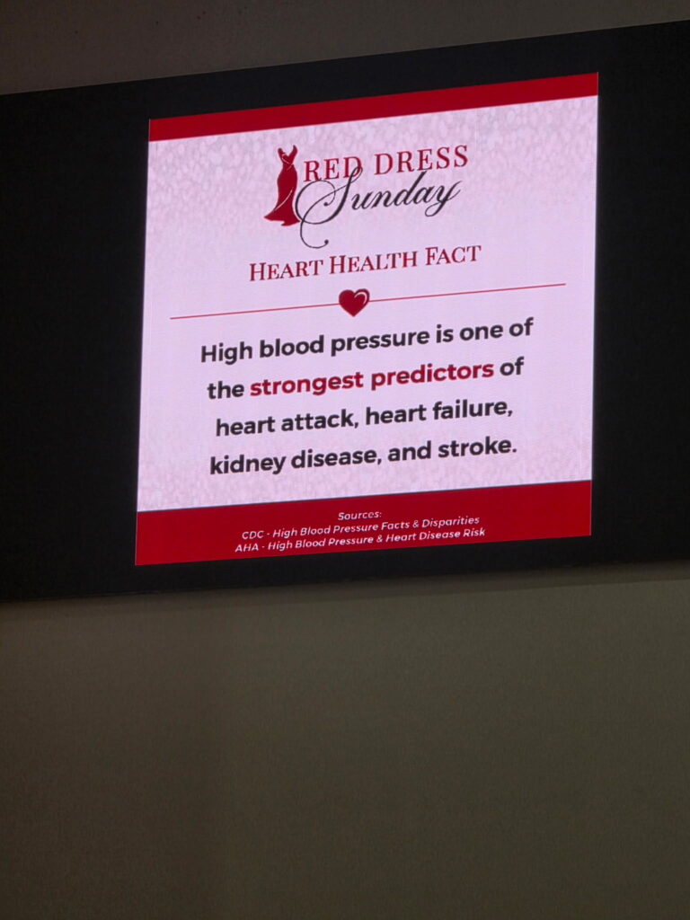 Red Dress Sunday is a faith-based health awareness initiative held during American Heart Month. Churches and congregations wear red to bring attention to women’s heart health, share lifesaving education, and encourage prevention.